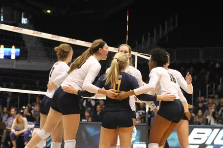 Redshirt sophomore Taylor Louis led the squad with 16 kills and eight digs, while redshirt senior Meghan Niemann and freshman Allie Barber tallied 13 and 12 kills, respectively. Niemann hit .346 and added one block.