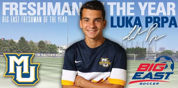 NEW YORK - A pair of Marquette University men's soccer players highlighted this year's BIG EAST postseason awards announced by the league on Saturday. Midfielder Luka Prpa led the way with Freshman of the Year honors, while senior center back John Pothast was selected to the All-BIG EAST Second Team.