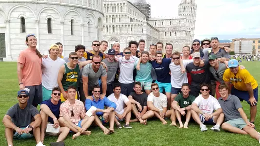 Following the conclusion of the game, Marquette headed west for some time along the Ligurian Sea before heading to take in the Leaning Tower of Pisa and the world's largest baptistry.