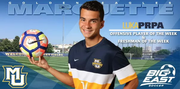 NEW YORK - Freshman midfielder Luka Prpa continues to reel in the accolades as the BIG EAST Conference announced today that the Wind Lake, Wisconsin native has been named this week's Offensive Player and Freshman of the Week.