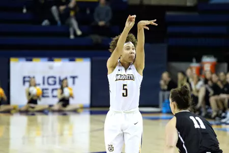 In addition to tallying 15 points on the evening, Hiedeman displayed the other facets of her game early and often. The Green Bay, Wis., native also posted five rebounds, seven assists, and a steal to couple her scoring output. The reigning BIG EAST Freshman of the Year, Blockton, followed Hiedeman's performance accordingly, pairing her game-high 19 points with seven boards, and three helpers.