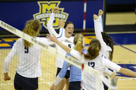 The Musketeers were led by Laura Grossman with 12 kills and a .423 clip, while Meredith Klare collected 19 digs. Alexis Newsome put up a match-high six blocks.
