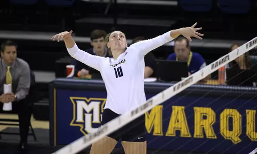 MILWAUKEE -- The Marquette University women's volleyball team made quick work of Providence on Friday night as the squad downed the Friars in straight sets, 25-13, 25-23, 25-21.