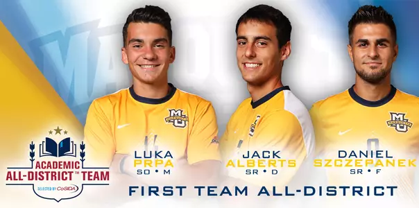 AUSTIN, Texas - Seniors Daniel Szczepanek and Jack Alberts, as well as sophomore Luka Prpa, were all named to the 2017 CoSIDA Academic All-District 6 Team. This is the fifth time in the past six years Marquette has earned multiple all-district selections and most since 2013.