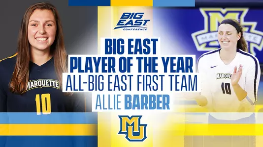 NEW YORK-- Marquette University sophomore Allie Barber was named BIG EAST Player of the Year and a unanimous selection to the All-BIG EAST First Team, highlighting a number of notable all-league selections for the Golden Eagles, the league announced on Wednesday morning.