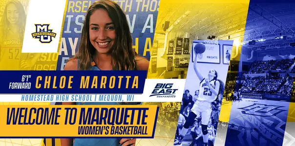 "We are beyond thrilled to welcome Chloe Marotta officially to the Marquette women's basketball family," Kieger said. "She has been a part of the Marquette family for many years, but to have her on the women's side is really a dream come true for our staff. She is everything that is right about Marquette and exemplifies the student-athlete that we want to coach and that we want representing our program."