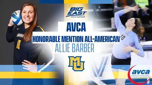 KANSAS CITY, Mo. -- Marquette University volleyball sophomore Allie Barber has earned American Volleyball Coaches Association (AVCA) Honorable Mention All-American honors, announced on Wednesday.