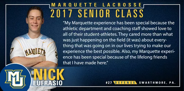 NE: I would tell future members of the Marquette lacrosse program to buy into the culture of love that has been set. Buy into what the coaches and veterans of the team are saying and doing. Lastly, live everyday by the acronym EAGLES that has been established.