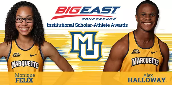 NEW YORK - Marquette University senior Alex Halloway and junior Monique Felix were named Marquette's Institutional BIG EAST Male and Female Scholar-Athletes of the Year, presented by Sunkist, the conference's Academic Affairs Committee announced on Thursday. Both will receive $2,000 graduate scholarships.
