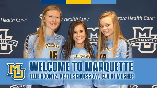 MILWAUKEE-The Marquette University women's volleyball team and head coach Ryan Theis welcomes Ellie Koontz, Claire Mosher and Katie Schoessow to Marquette as each have signed National Letters of Intent, announced on Wednesday. All will arrive on campus in the summer and have four years of eligibility remaining.