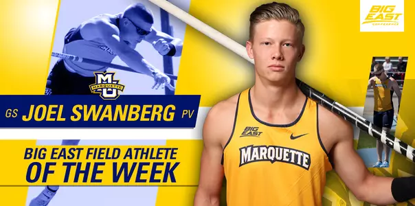 NEW YORK - Marquette University grad student Joel Swanberg has been named BIG EAST Field Athlete of the Week following his record-setting performance in the pole vault, the league office announced on Monday.