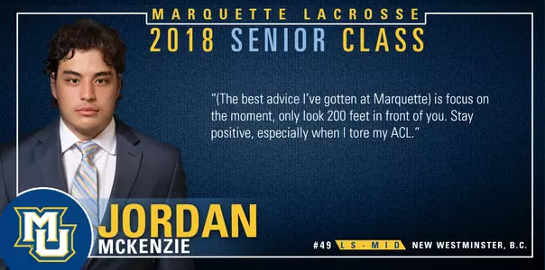 Jordan McKenzie has proved to be a critical part of the defensive unit at LSM during the 2018 campaign after missing each of his first two seasons at Marquette. The New Westminster, B.C. native has played in all 12 games this season and has nine ground balls and four caused turnovers.