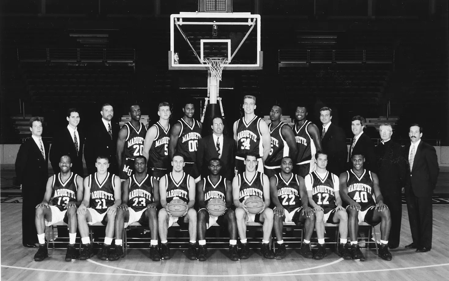 The 1993-94 roster featured seven players who would score 1,000 career points at Marquette and the respective all-time leaders in blocked shots and assists, McIlvaine and Miller.