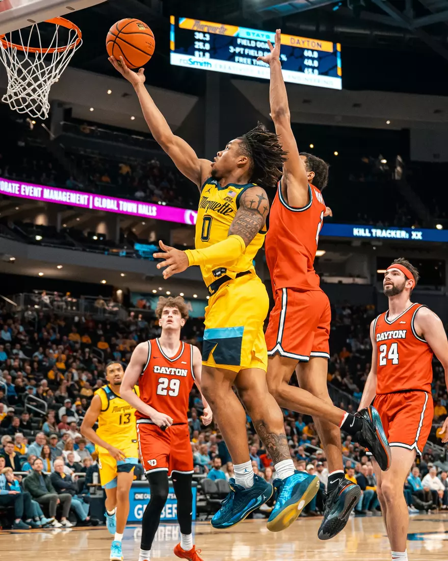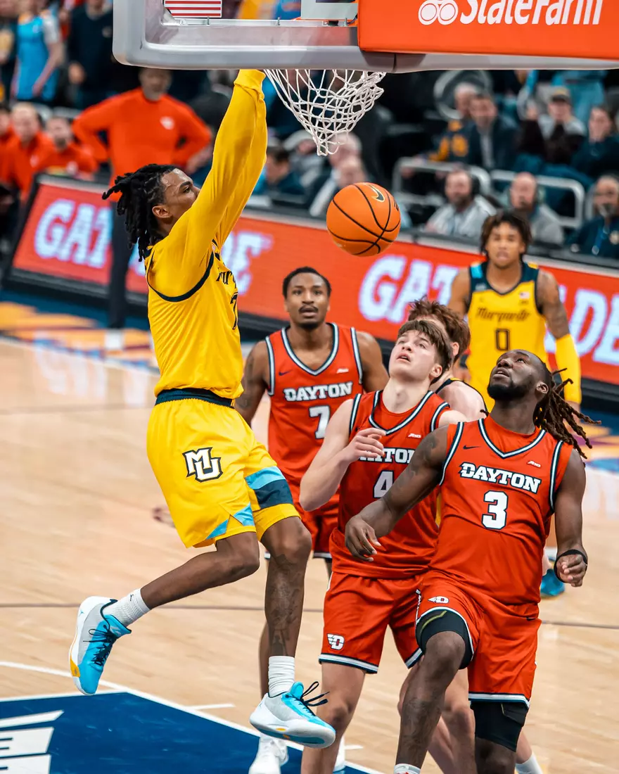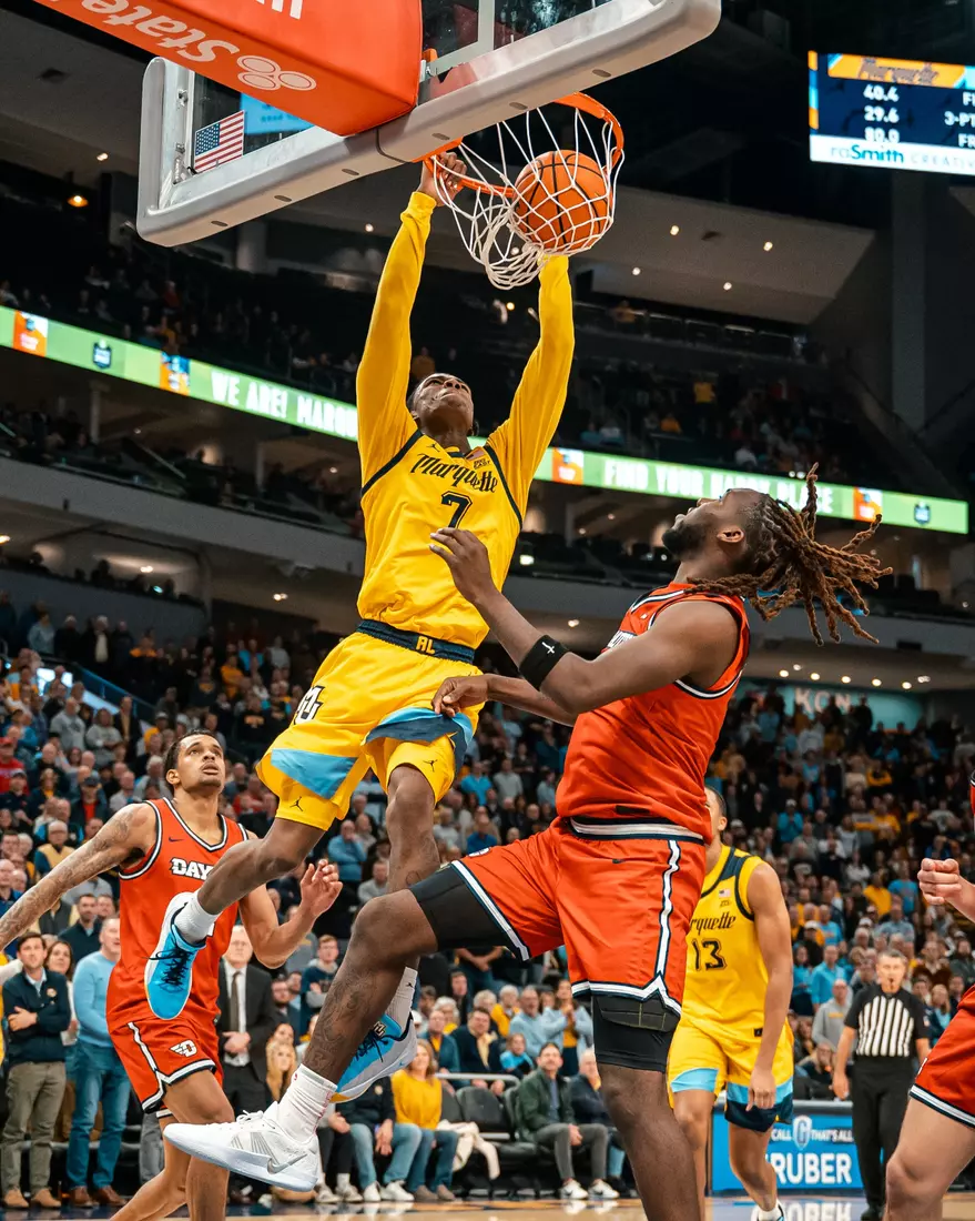 Marquette shook off a slow start and used its pressure defense to flip the momentum, forcing 16 Dayton turnovers in the opening period. Norman and Ross sparked a 14–2 run with multiple steals and transition finishes, and a Lowery three helped MU take a brief lead. James Jr. added late free throws, but Dayton closed the half on a small surge, and the Golden Eagles went into the locker room trailing 39–34.Â