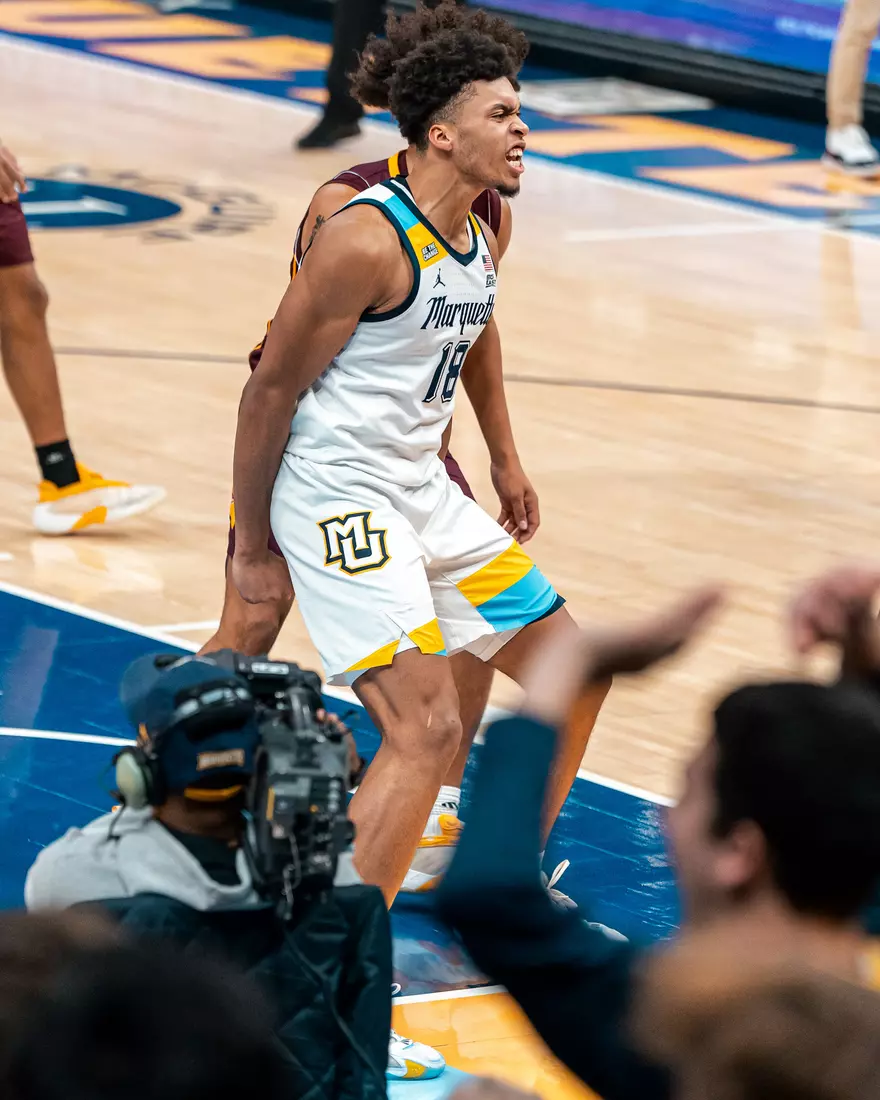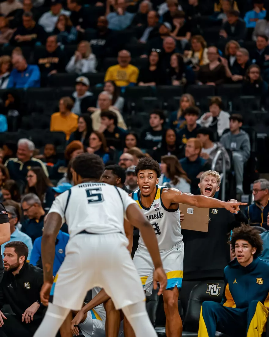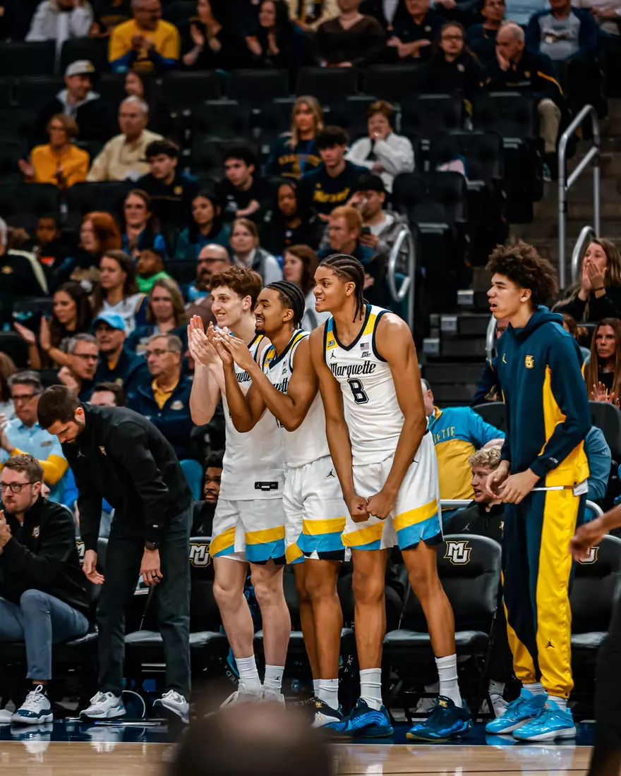 The opening 20 minutes featured several lead changes, with Marquette holding a narrow 34–32 advantage entering the final media timeout of the half. A Ross layup and a Ben Gold three-pointer sparked a short run that pushed the margin to seven, but Marquette went scoreless over the final three minutes and carried a 41–36 lead into halftime.