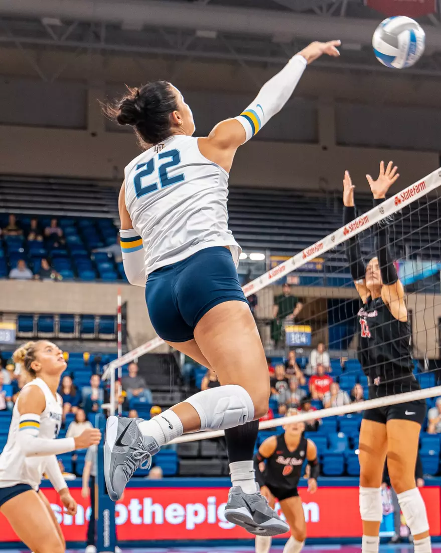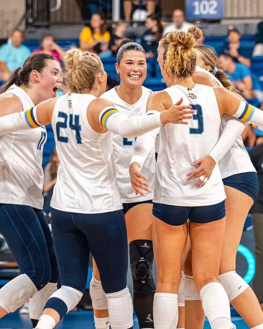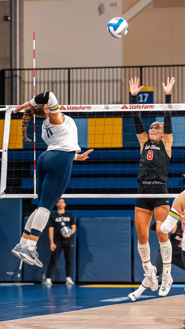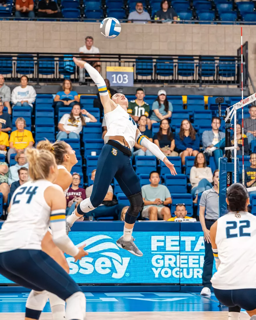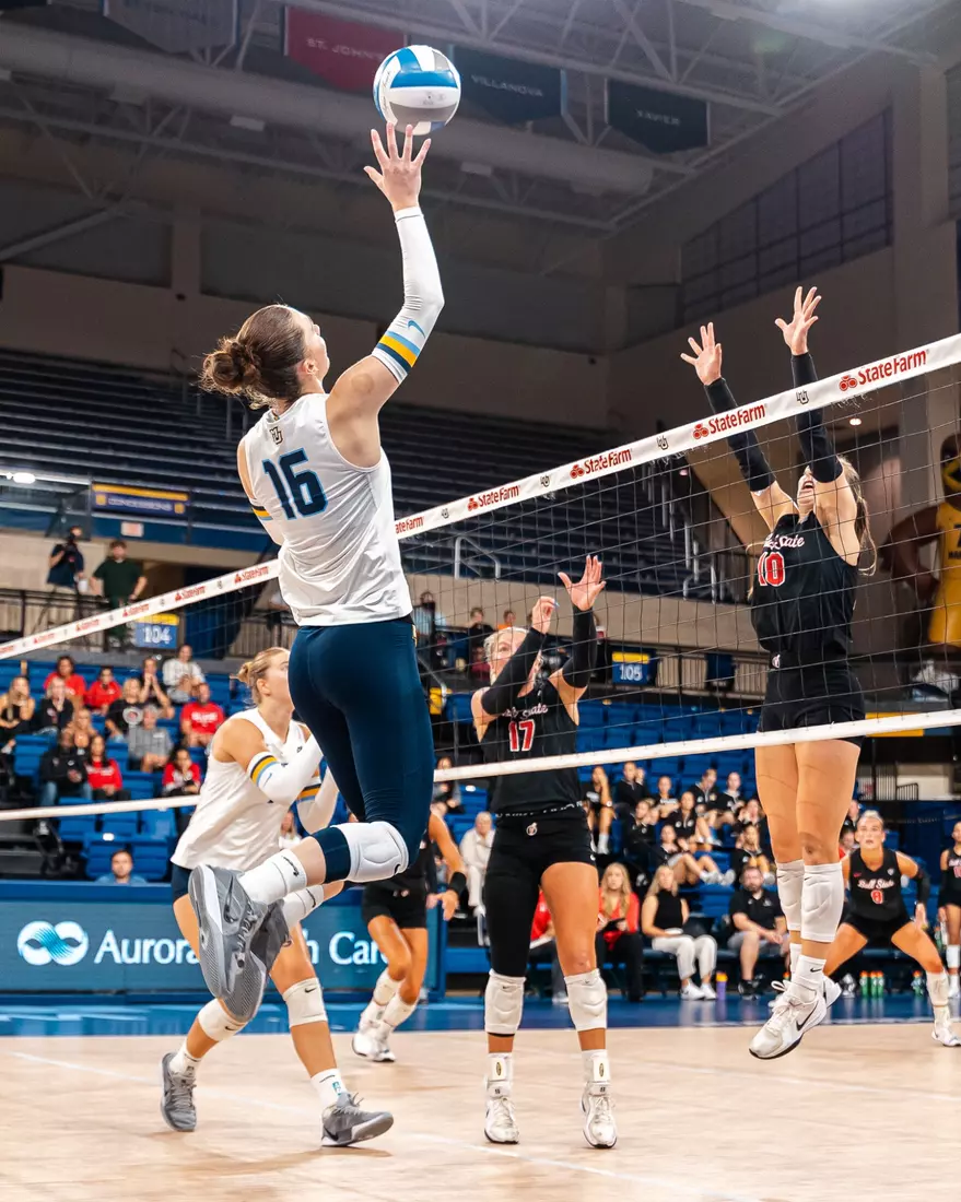 The Blue and Gold kept their momentum as they solidified the 25-22 set win. Bray led with 5 kills followed by Elena Radeff and Holmstrom who posted four a piece.