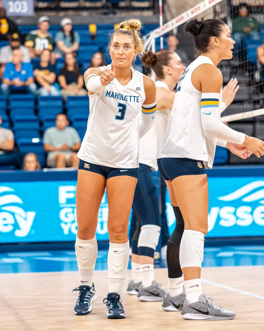 The Golden Eagles dominated the third set as they cruised to a 25-18 win. Natalie Ring led with 11 kills and added five digs to push MU to a 2-1 advantage. Bray also put up an impressive effort recording 10 kills and one dig.